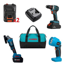 Set Hammer 859607 — polizor unghiular, masina de gaurit si ins..