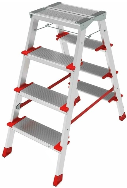 Scara aluminiu dubla, 4 trepte, cu platforma, 1,5 m, Bauwelt