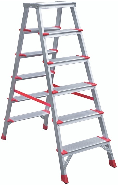 Scara aluminiu dubla, 6 trepte, cu platforma, 2,1 m, Bauwelt
