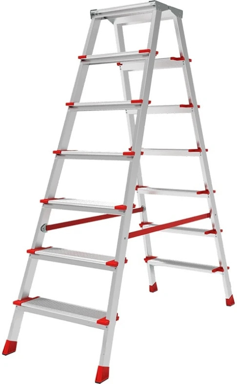 Scara aluminiu dubla, 7 trepte, cu platforma, 2,5 m, Bauwelt
