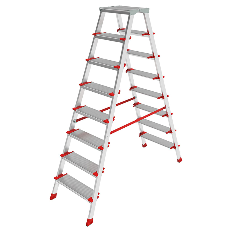 Scara aluminiu dubla, 8 trepte, cu platforma, 2,7 m, Bauwelt