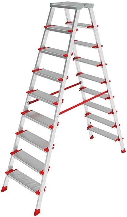 Scara aluminiu dubla, 9 trepte, cu platforma, 3 m, Bauwelt