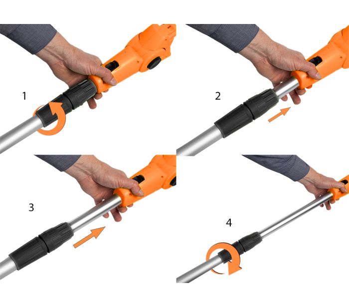 Foarfecele de taiere au lama de 46 cm si diametrul maxim al crengilor taiate de 20 mm, asigurand o modelare precisa a arbustilor. Reglarea unghiului tijei si curea de umar confortabila sporesc confortul la lucru, iar tija telescopica permite adaptarea instrumentului la inaltimea utilizatorului si atingerea crengilor inalte fara efort suplimentar.
