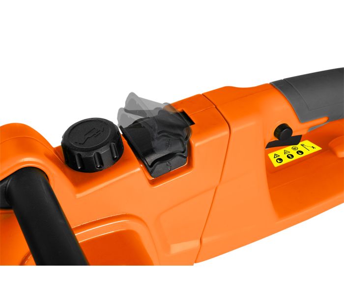 Fierastraul cu lant este echipat cu rezervor de ulei de 60 ml, frana de siguranta si protectie pentru lama, precum si cu functia de reglare rapida a lantului (SDS), asigurand siguranta si confort in utilizare. Viteza lantului de 12 m/s permite taierea eficienta a crengilor si a copacilor mici.