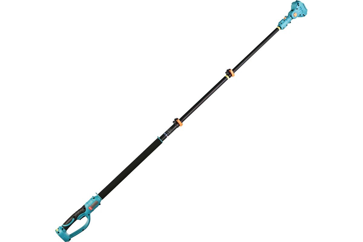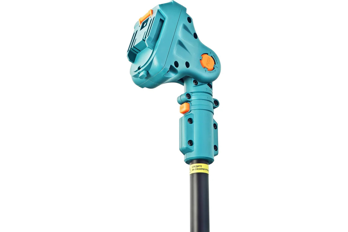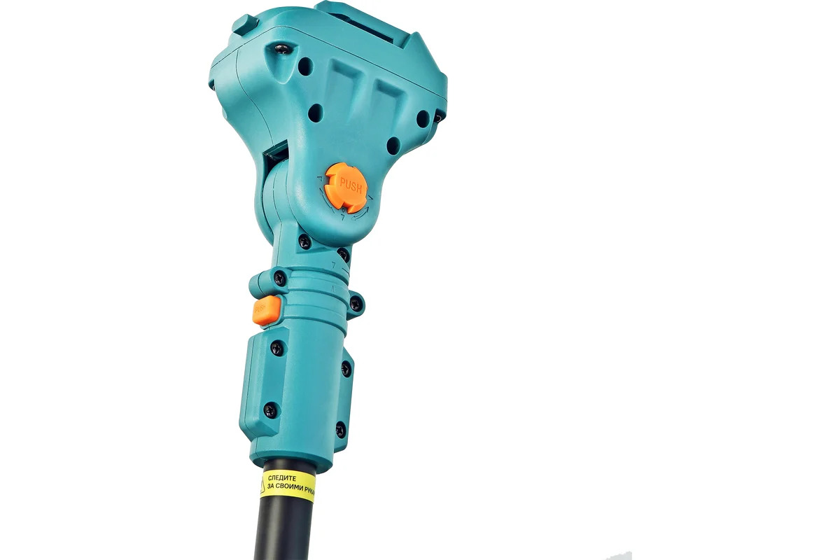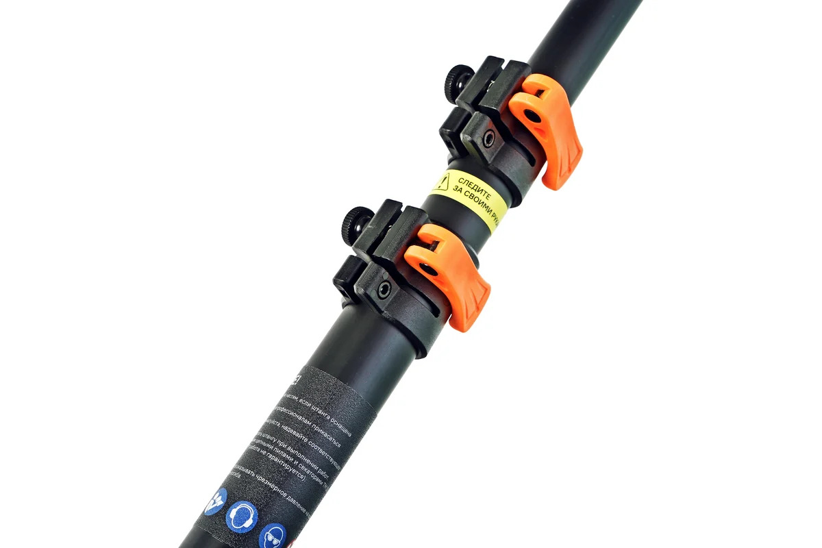 Intervalul de lucru ajustabil este de 128 pana la 260 cm, ceea ce face tija potrivita pentru diverse sarcini din gradina. Partea superioara este dotata cu un cap pivotant cu noua pozitii fixe de inclinare — de la 5 grade la 175 grade, facilitand accesul in zonele greu de atins si permitand taierea la un unghi optim.