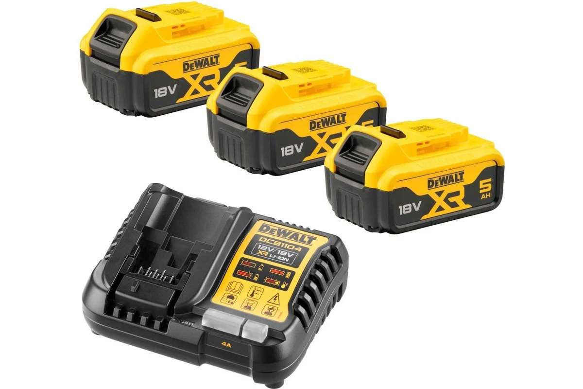 Набор зарядного устройства DeWALT 18 V XR с 3 аккумуляторами Li-Ion 5,0 Ач DCB1104P3