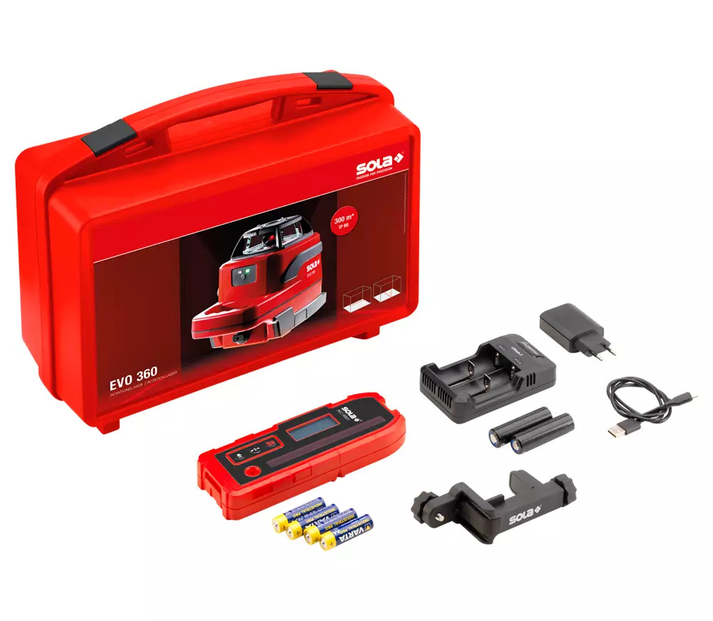 SOLA EVO 360 este o nivela laser rotativa profesionala, conceputa pentru aliniere precisa pe orizontala si verticala, utilizabila atat in interior, cat si pe santiere exterioare. Aparatul dispune de autonivelare la inclinatii de pana la ±5°, ceea ce permite o pregatire rapida pentru lucru.