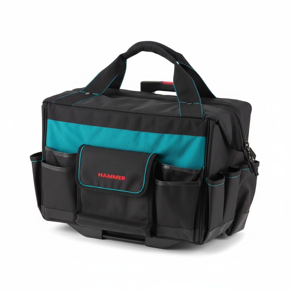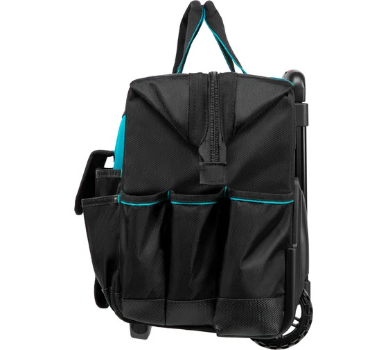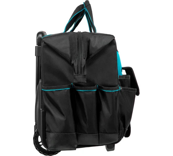 Конструкция оснащена удобной выдвижной рукояткой и надёжными колёсами, позволяющими легко перемещать сумку даже при полной загрузке. Благодаря оптимальным габаритам 460×240×340 мм, сумка сочетает вместительность и компактность, оставаясь практичным решением для мастеров, монтажников и специалистов, которым важно надёжное и мобильное оборудование для работы.