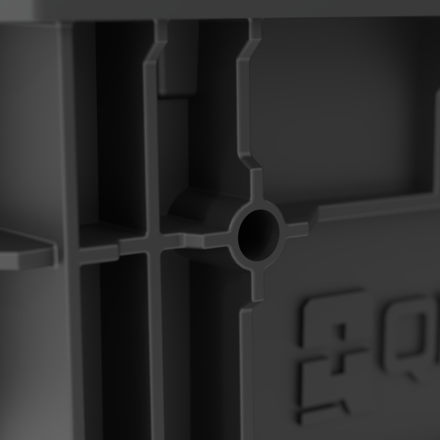 Versiunea actualizata 2.0 are o carcasa intarita si posibilitatea instalarii insertiilor filetate M8, permitand personalizarea sistemului conform nevoilor individuale ale utilizatorului.