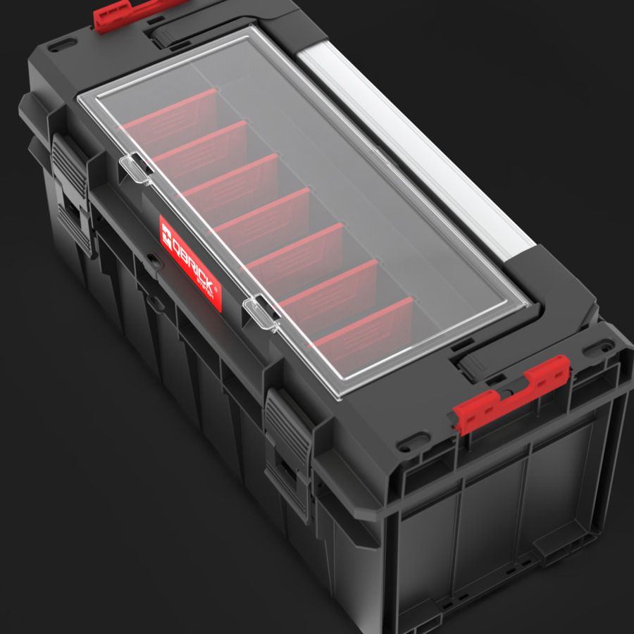 Organizatorul Expert, amplasat in capac, este echipat cu separatoare reglabile, care permit organizarea cu usurinta a accesoriilor mici si a uneltelor lungi din atelier.