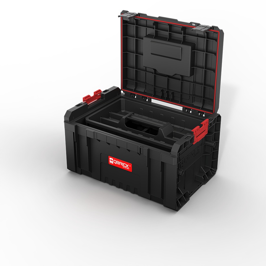 Descrierea completa si caracteristicile produsuluiQBRICK SYSTEM PRO TOOLBOX 2.0 — o cutie modulara spatioasa pentru scule, conceputa pentru utilizare profesionala. In configuratia standard, modelul ofera un echipament complet: garnitura flexibila integrata in capac, care asigura protectie ridicata impotriva prafului si apei, 3 compartimente reglabile, tavita incapatoare, precum si conectori laterali si inchideri frontale din poliamida intarita, extrem de rezistenta.