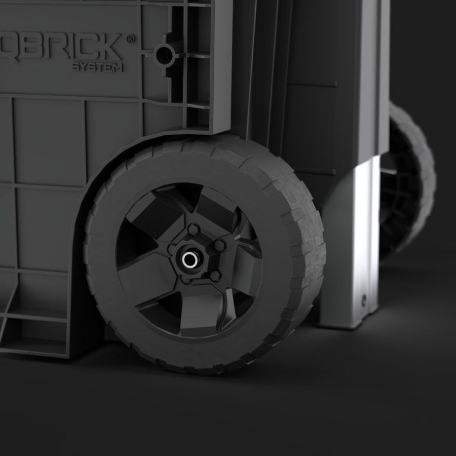Containerul este echipat cu roti mari din cauciuc montate pe ax metalic, asigurand transportul usor si convenabil al uneltelor.