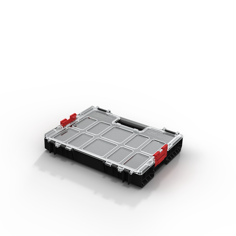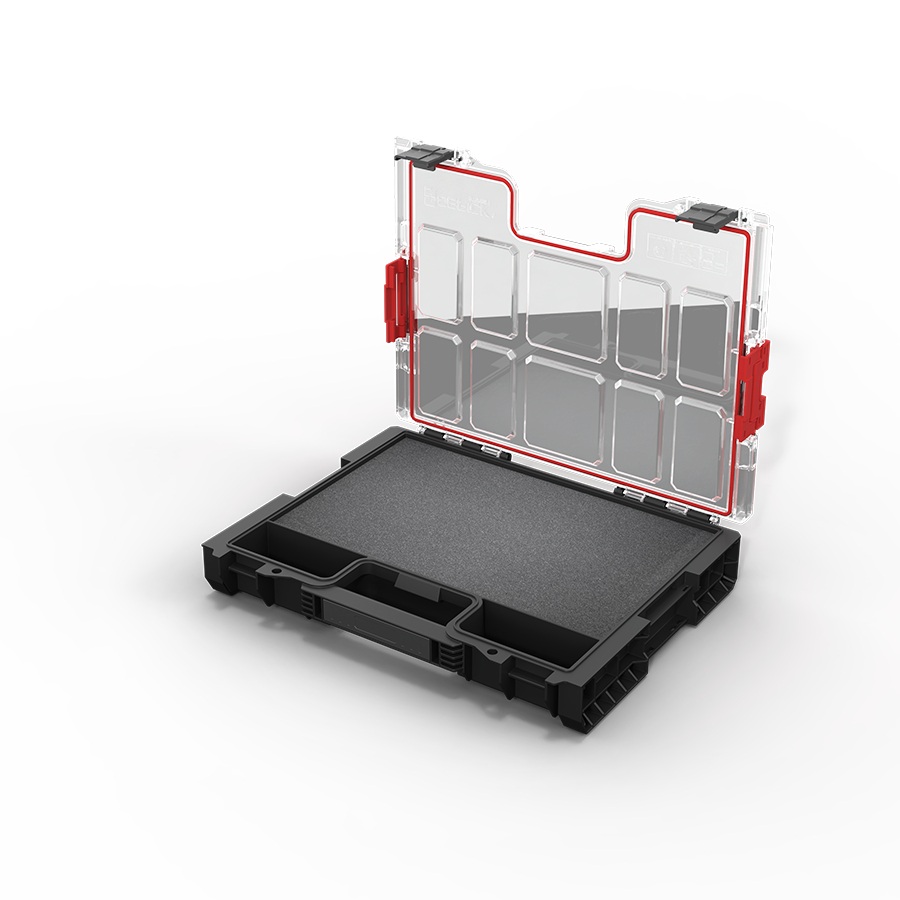 Descrierea completa si caracteristicile produsuluiQBRICK SYSTEM PRO Organizer 200 Multilayer Foam Inserts — modelul mediu din gama PRO. Organizatorul este echipat cu sistemul patentat Easy Access System, garnitura in capac, capac super-rezistent din policarbonat si conectori laterali din poliamida. Manerul ergonomic, clemele frontale din poliamida si doua compartimente suplimentare asigura confortul si eficienta in utilizarea si depozitarea sculelor.