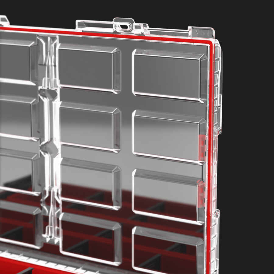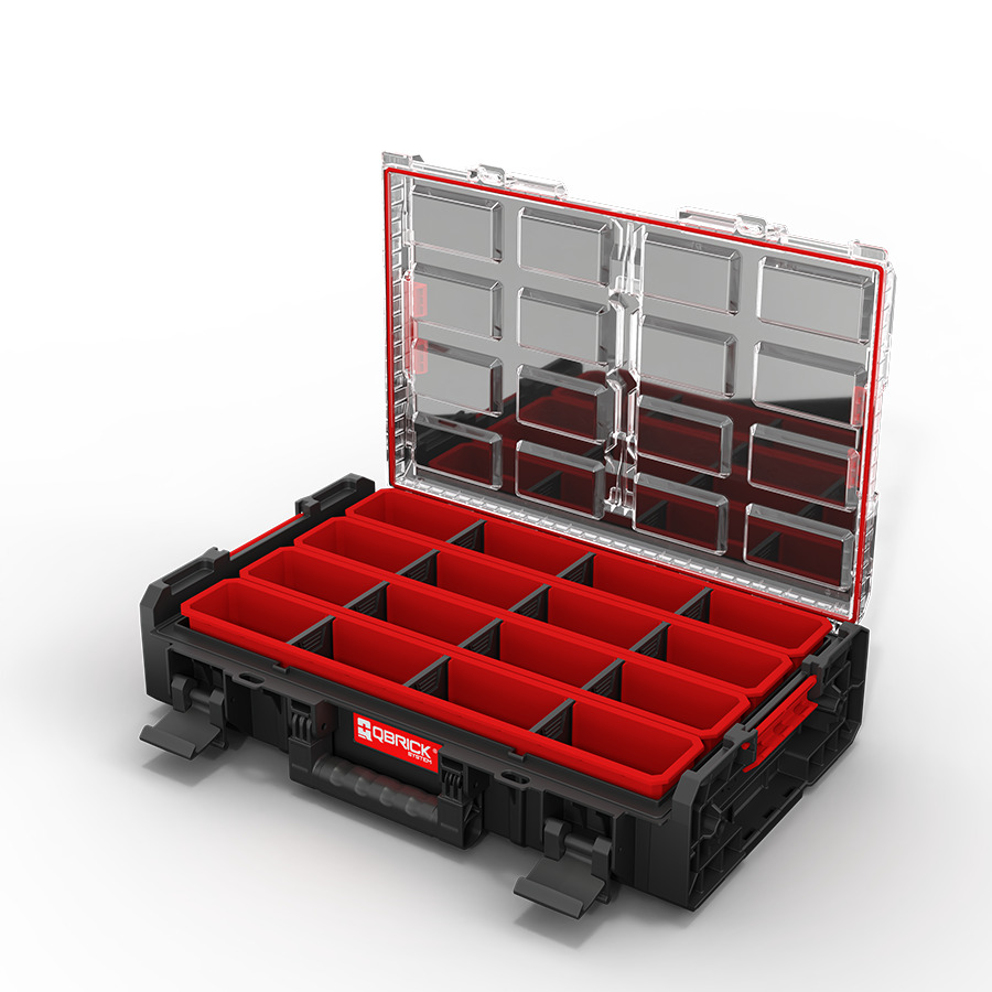 Descrierea completa si caracteristicile produsuluiQbrick System ONE Organizer XL Long Bin este o versiune noua a organizatorului XL din gama de organizatoare modulare ONE, care pot fi combinate intre ele, precum si cu toate cutiile din seria ONE. Continutul organizatorului este protejat de un capac transparent rezistent si este echipat cu conectori suplimentari pentru conectarea modelelor mai mici de organizatoare (M, M Plus si L).