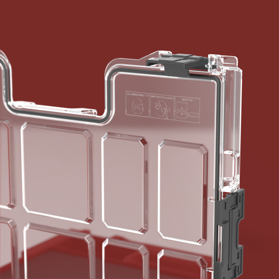 Organizerul QBRICK SYSTEM PRO 100 este cel mai compact model din gama PRO. Principalele avantaje: sistemul patentat Easy Access, garnitura capacului (IP54), capac super-rezistent din policarbonat, maner ergonomic si conectori laterali din poliamida.