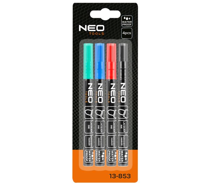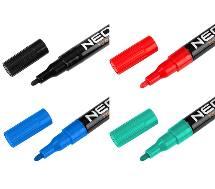 Set de markere permanente NEO TOOLS, 4 culori, rezistente la apa