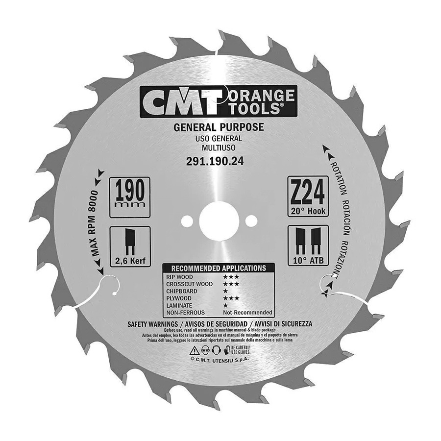 Disc de ferastrau pentru lemn Contractor 190×2,2×1,4×30 mm, 24 dinti, ATB, CMT K19024M‑X10