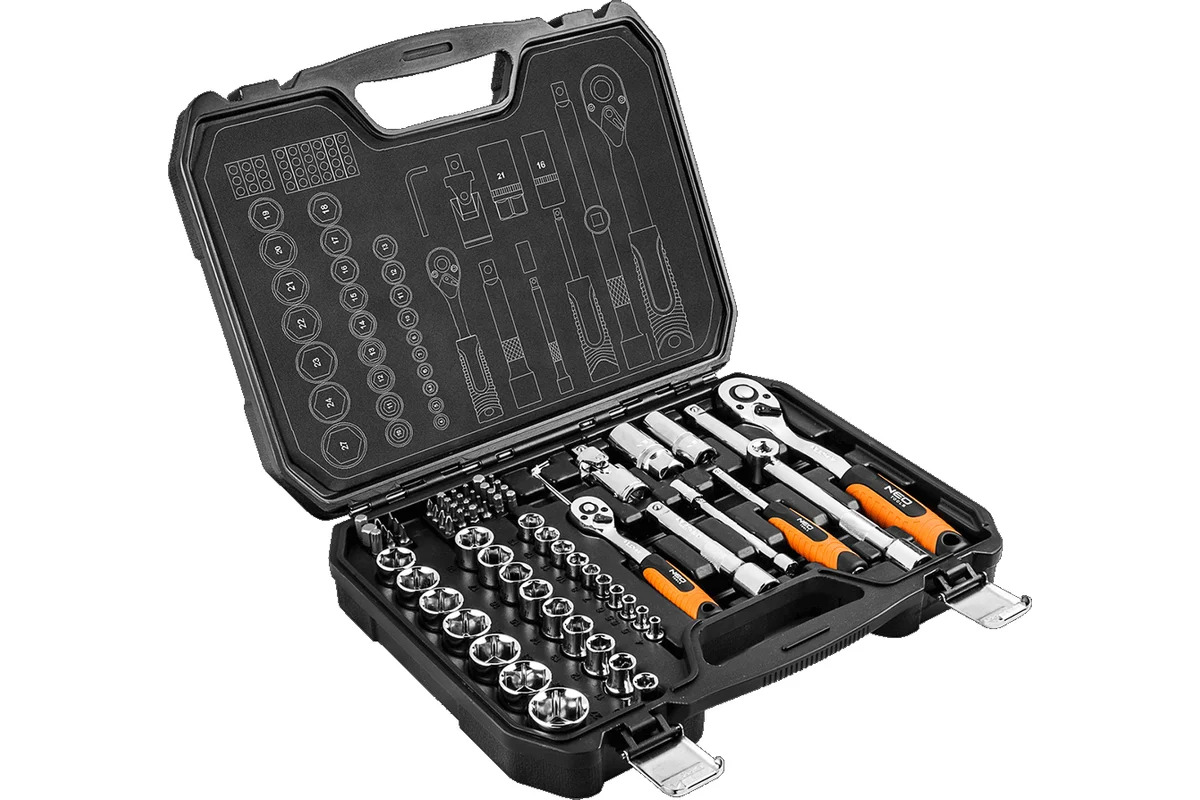 Set chei tubulare 1/2, 1/4 – 73 piese, CrV – NEO TOOLS 08‑673