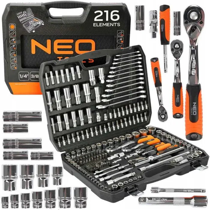 Set de scule 1/2, 3/8, 1/4, 216 piese, CrV, NEO TOOLS 10‑216