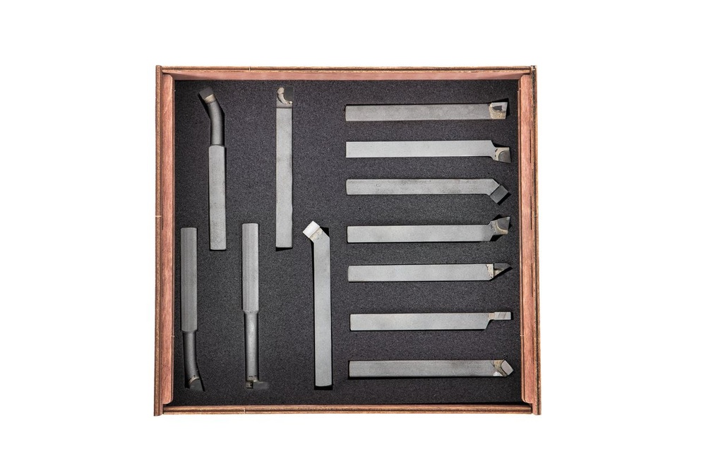 JET 500101661010RU Setul de 12 freze cu insertii din carbura T5K10, sectiune transversala 10 x 10mm este un set de scule de taiere concepute pentru o gama completa de operatiuni de strunjire pe masinile JET.